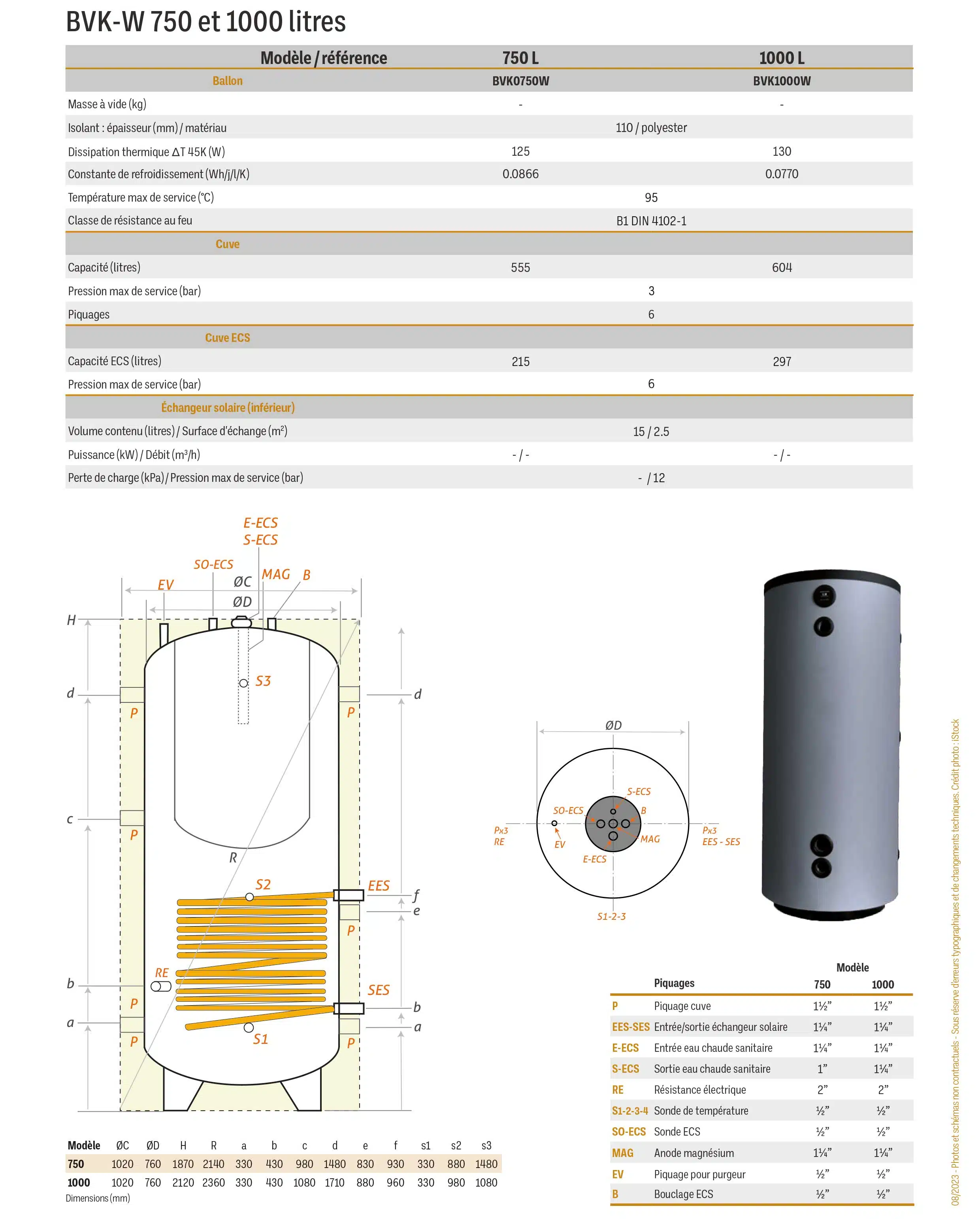 Ballon kombi «tank in tank» simple échangeur BVK-W 750 à 1000