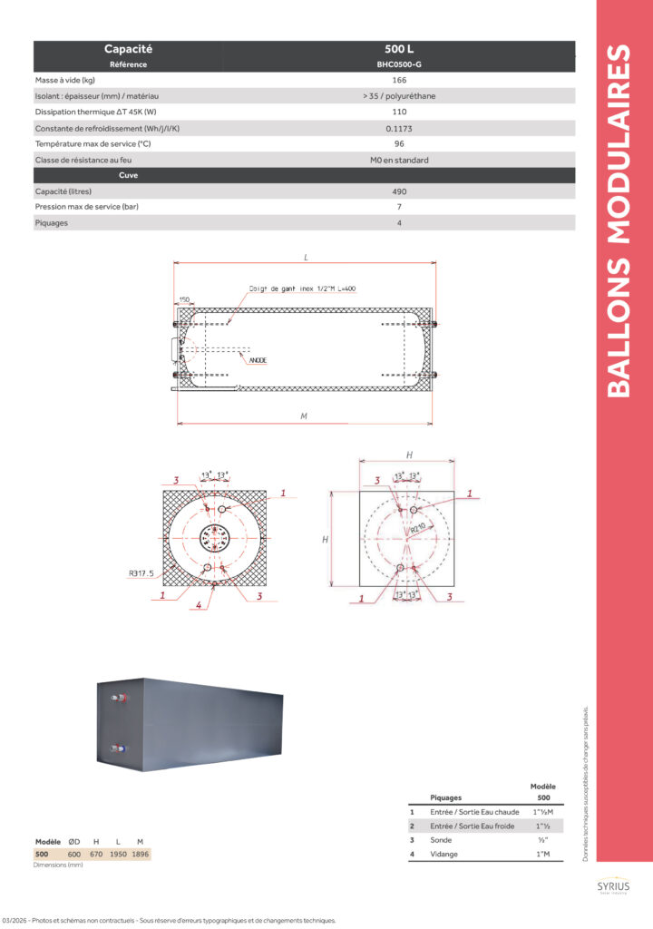 “LE CUBE” BHC-500 Ballon modulaire pour stockage d’ECS