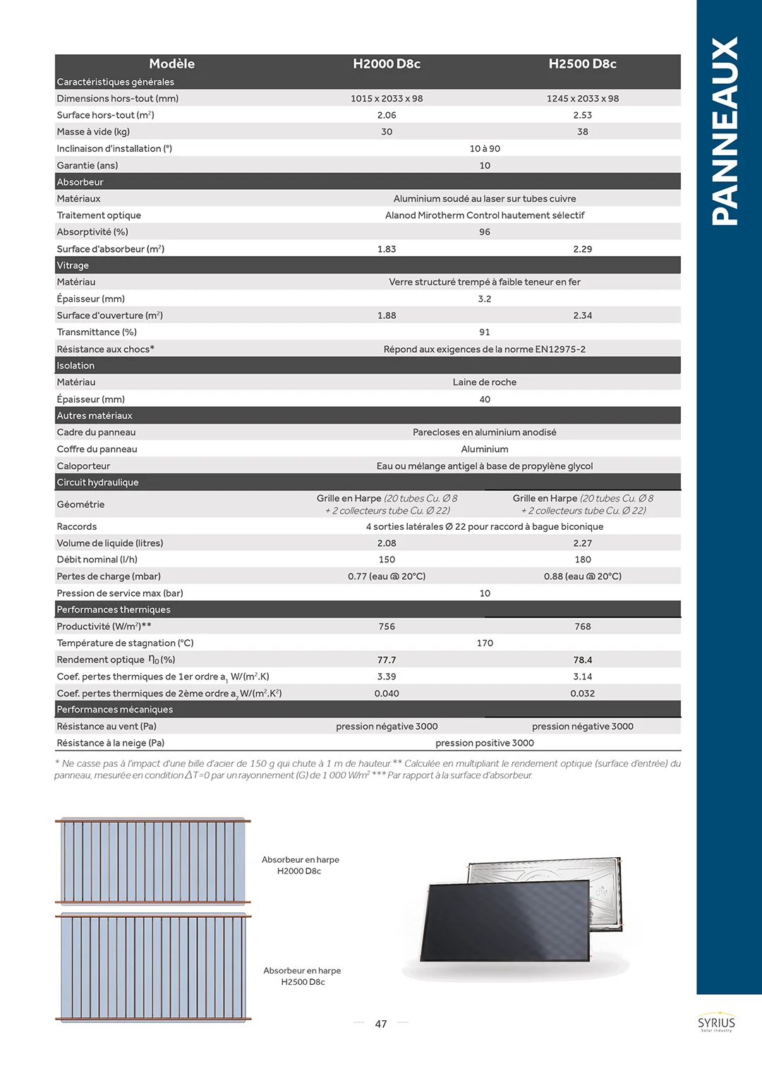 Les panneaux solaires thermiques SYRIUS de la série D8c sont parfaitement adaptés à un usage en circuit indirect en métropole.