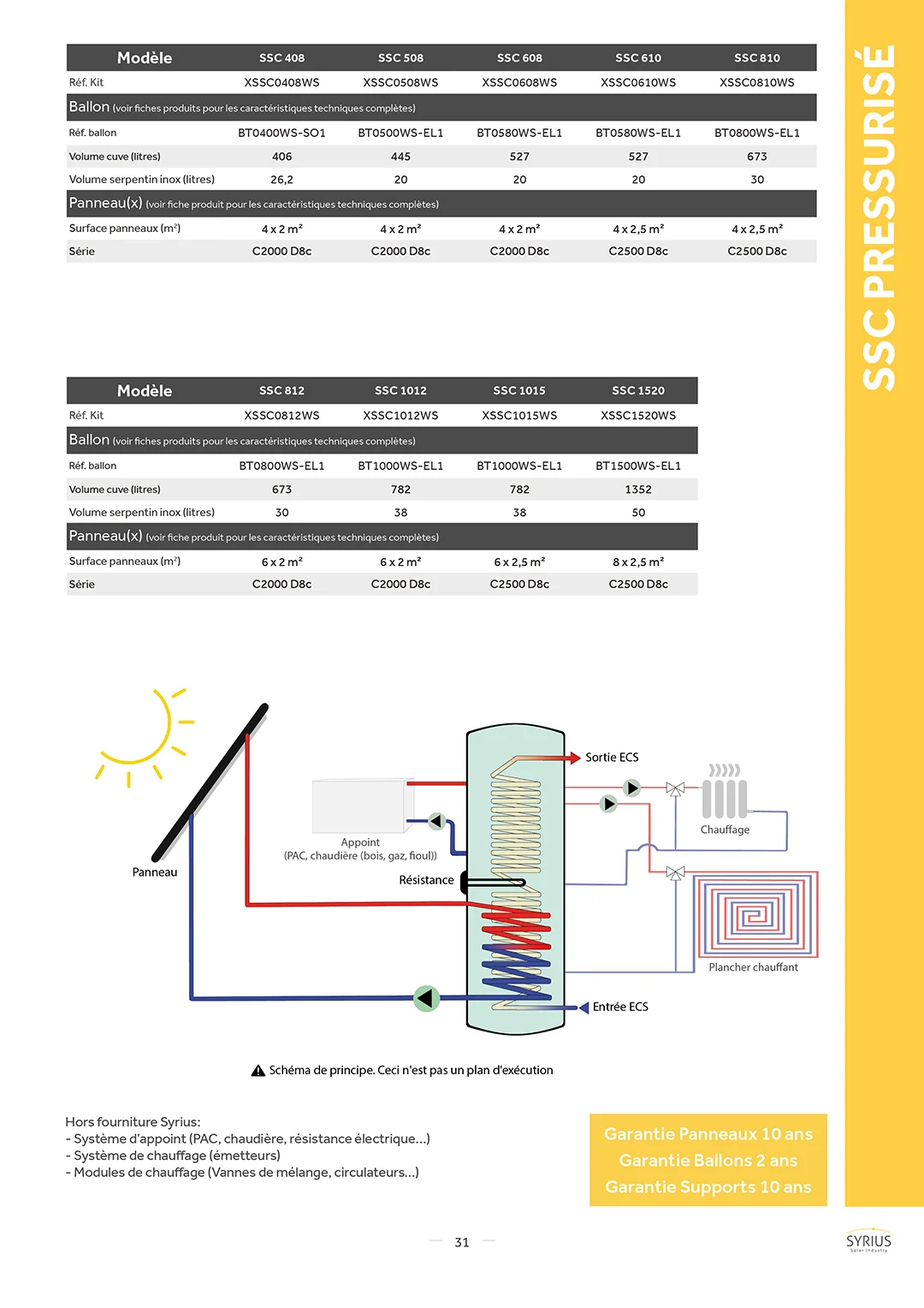 Dans les systèmes proposés par SYRIUS, le ballon de stockage permet de produire l’eau chaude sanitaire à la demande. Les capteurs solaires réchauffent le ballon principal via l’échangeur en partie basse.